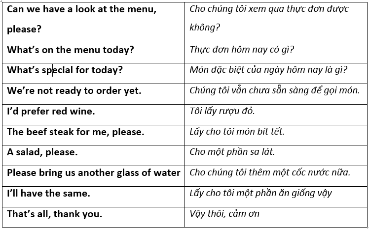 CÁC MẪU CÂU GIAO TIẾP THÔNG DỤNG TẠI NHÀ HÀNG