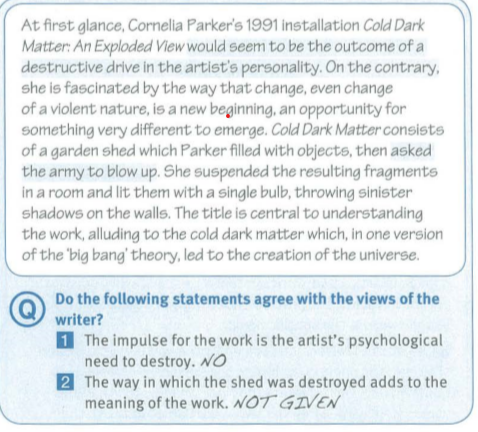 NO: Khi ý kiến trong phần nhận định trái ngược với quan điểm của tác giả trng bài đọc