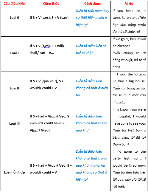 Câu điều kiện (Conditional sentences) là dạng câu dùng để thể hiện những giả thiết về một sự việc, hành dộng chỉ xảy ra khi điều kiện được nhắc đến xảy ra. Câu điều kiện trong tiếng anh có nghĩa tương tự câu nói “Nếu – Thì” trong tiếng Việt.